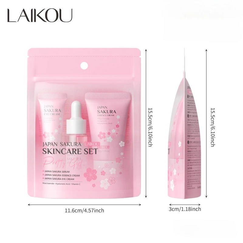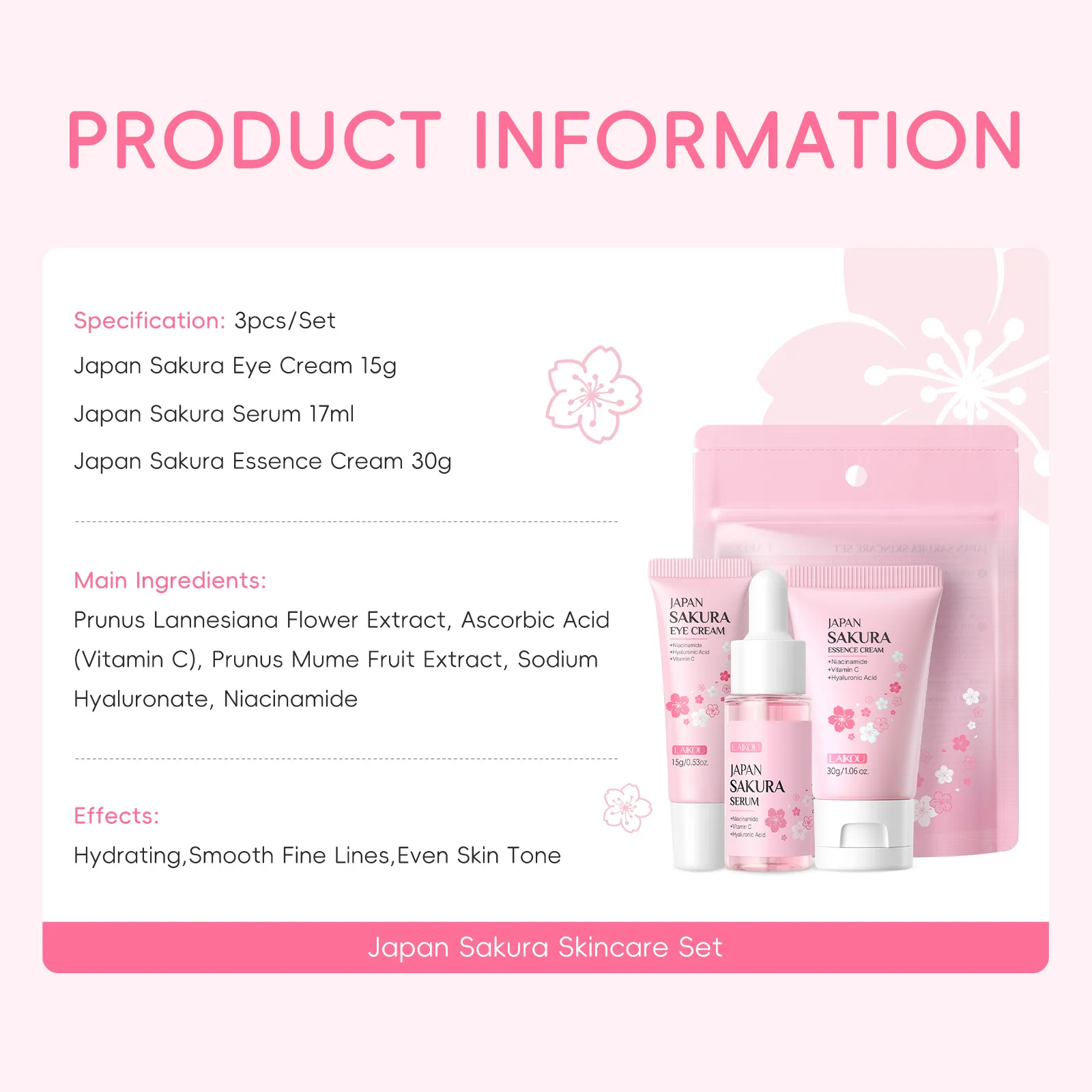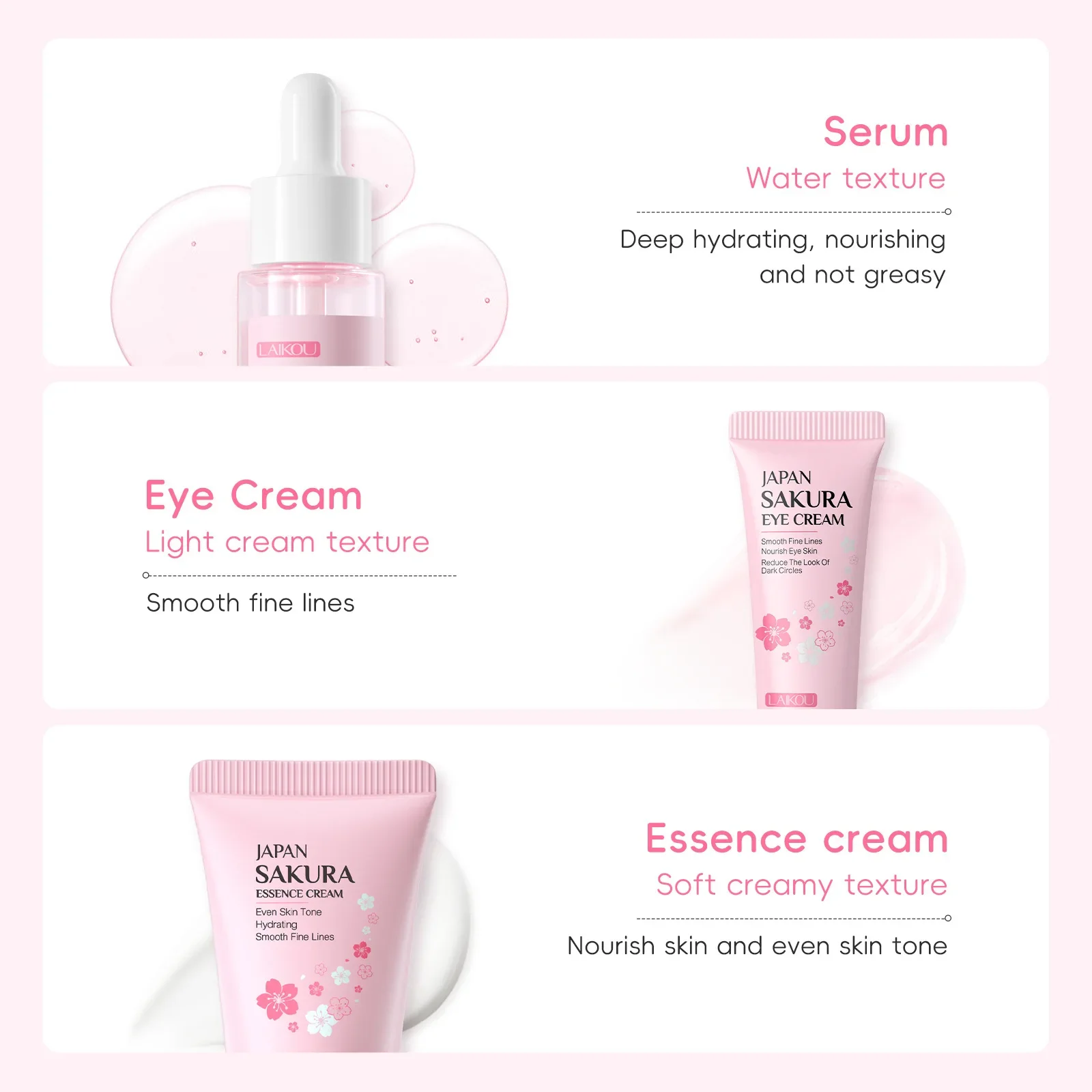 3pcs/Set LAIKOU Sakura Facial Set for Hydrating Moisturizing Whitening and Brightening