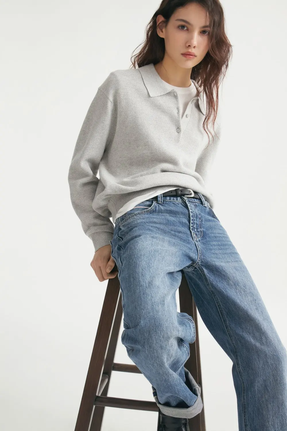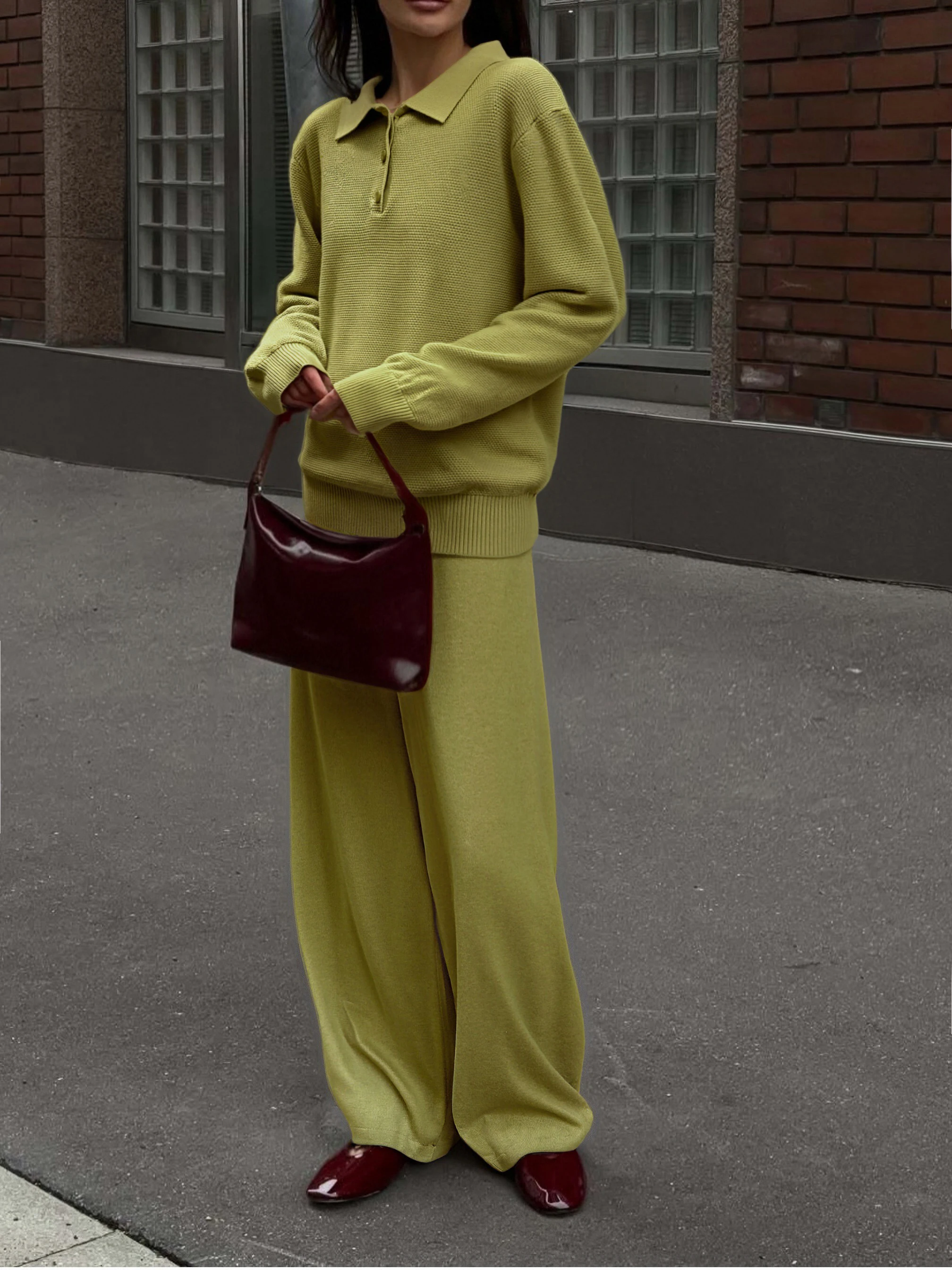 Hirsionsan Winter Thick Women Knitted Suits Soft 2 Pieces soft Female Sets Polo Neck Sweater & Wide Leg Pants Knitted Outfit