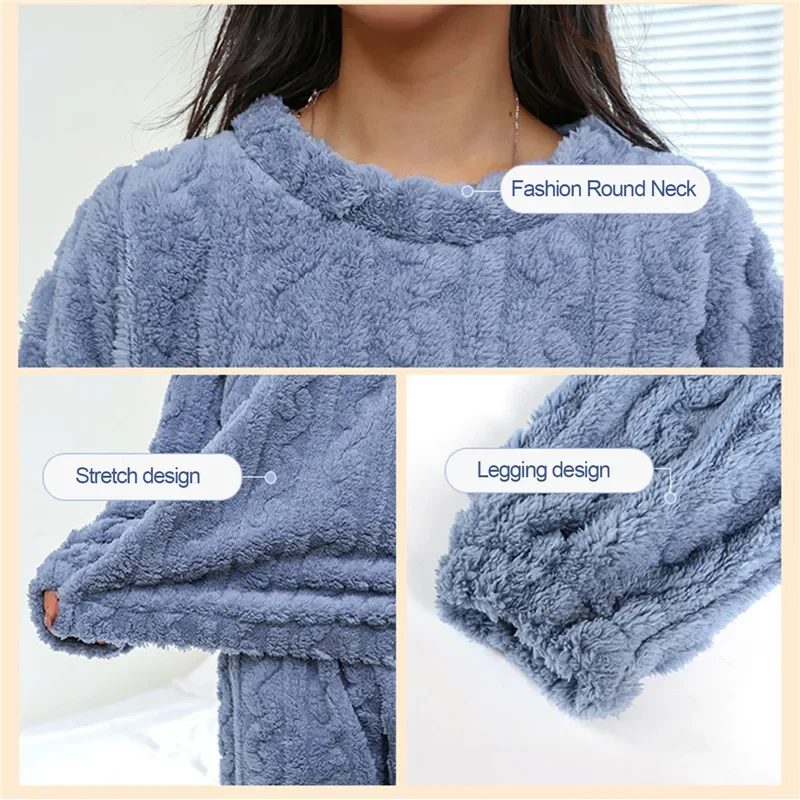 Winter Warm Coral Velvet Pajamas Set for Women Thick Fluffy Sleepwear Lounge Suit Cozy Soft Homewear Outerwear for Cold Weather