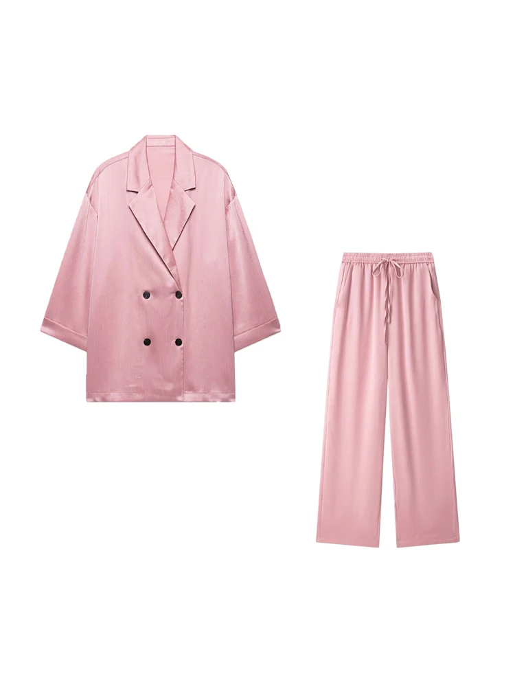 Step out in style with this elegant blazer and wide-leg pant set. Featuring a double-breasted design and high-waist fit — perfect for a confident, modern look all year round